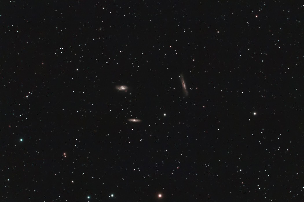 Il Tripletto del Leone è un piccolo gruppo di galassie che dista circa 35 mln a.l. dalla Terra nella costellazione del Leone.Il gruppo è formato dalle galassie a spirale M 65, M 66 e NGC 3628 visibili in dettaglio nelle tre immagini ritagliate.